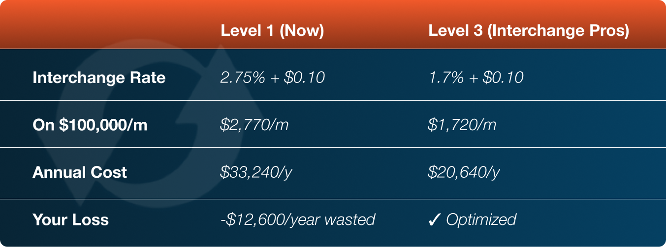 Level 3 optimization is specifically designed for B2B and government transactions. If most of your volume is retail/consumer sales, you may not see significant savings. Our free consultation will help determine if you're a good fit based on your transaction mix.